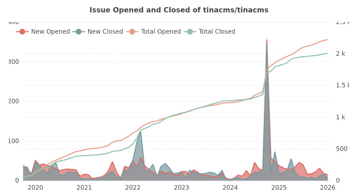 2. TinaCMS 中 Issue 的开启与关闭情况示意图。