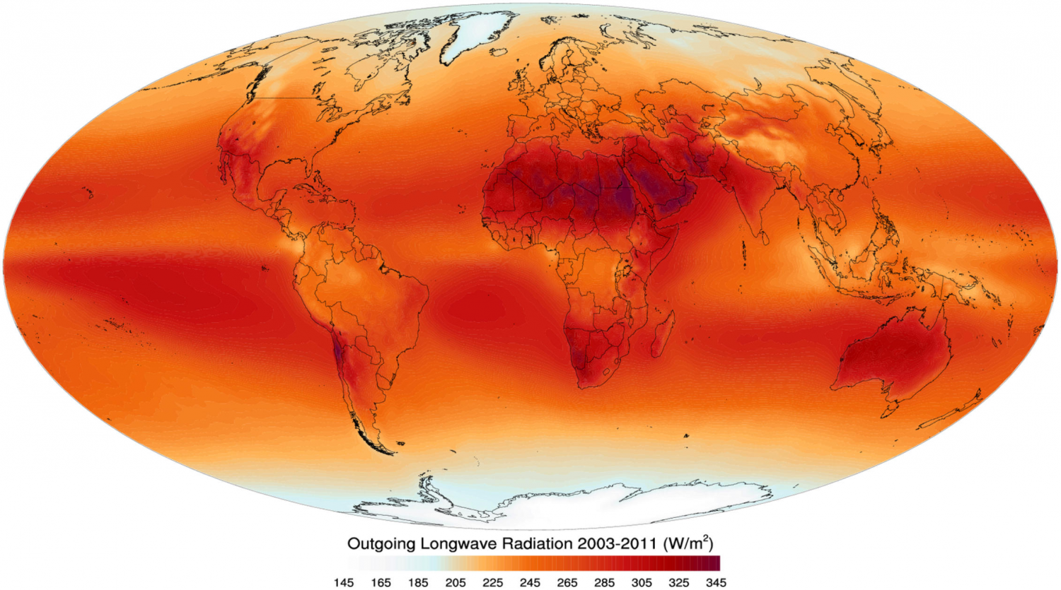 1. 2003年至2010年地球年平均长波辐射分布。