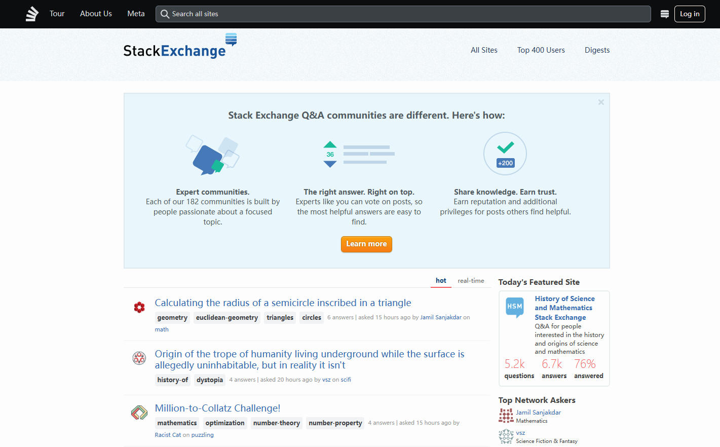 优点:Stack Exchange 最大的优势在于其社区驱动的高质量知识共享体系。用户的投票和编辑功能可以自然地对答案质量进行评估和改进,从而积累出高可信度的信息。同时,问题和答案得到系统性整理,便于通过搜索引擎快速找到所需信息,用户也能参考过去的问题迅速解决类似难题。此外,不同领域有独立的社区,即使是专业性强的话题,也能获得深入讨论和详细解答。